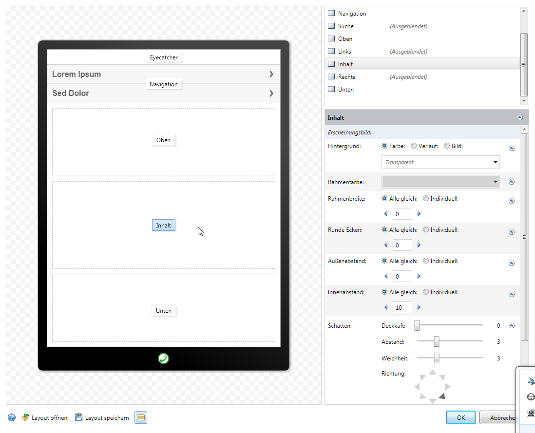 Bei Bedarf können Sie jede Einzelseite Ihres Webauftritts individuell strukturieren, z.B. was Anzahl und Anordnung der darzustellenden Inhaltsbereiche anbelangt.