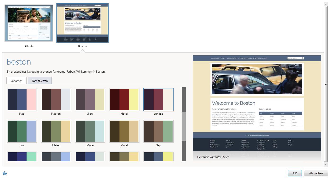 Zu Ihrer Website passende Farbpaletten lassen sich automatisch generieren. Alternativ können Sie Einzelfarben völlig individuell festlegen.